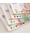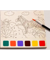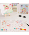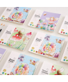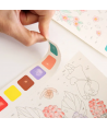 Fiecare pagina contine acuarele care pot fi activate simplu, doar prin umezirea pensulei si atingerea culorii dorite.