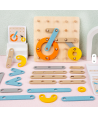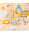 Joc Geoboard din lemn – litere, cifre, forme, carduri de activitati, 3 ani +