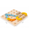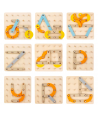 Joc Geoboard din lemn – litere, cifre, forme, carduri de activitati, 30 piese, 3 ani +