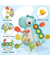 Aceasta jucarie senzoriala si de dentitie in forma de dinozaur verde ofera mai multe functii atractive pentru dezvoltarea abilitatilor motorii si senzoriale.