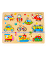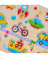 Puzzle educativ din lemn Vehicule Transport cu butoni, 10 piese, 30x22 cm, 1 an +