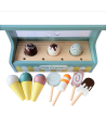 Setul contine 4 modele de inghetata pe bat cu diverse arome si 3 inghetate la cornet cu 6 arome diferite.