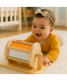 Început ideal pentru rostogolire și târâre – bebelușul este motivat să se miște, să urmeze tamburul și să exploreze.