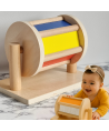 Fabricată din lemn natural, sigur și rezistent, tamburul rotativ zornaitor este conceput cu margini rotunjite și o bază stabilă, pentru ca joaca să fie întotdeauna sigură. Tamburul colorat cu bilă și oglindă oferă stimulare vizuală și auditivă, iar culorile vii atrag atenția bebelușilor și îi încurajează să exploreze.